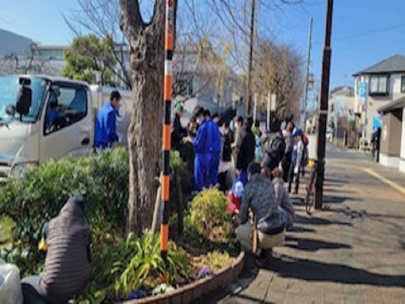 2/14 大森六中の生徒さん、清水窪小学校の皆さん、東科大、 地域の皆さん、花と緑の会の方と駅前花壇の整備をしました。今日の作業は①パンジー、キンセンカ、キンギョソウの水やり作業。この間雨が降りましたが、土がかなり乾燥しているため水が足りていません。5個のじょうろでたっぷり水やりをしました。②はさみを使って樹木のトリミング。前回下草のカットをやりましたが、今回は樹木の枝をすいてすっきりさせる。花と緑の会の方にお手本を見せてもらい、ハサミでケガをしないように注意を払って、上手にカットできていました。まだ寒い日が来ると思いますが、花壇の下の土の中は春の準備をしています。みんなのお世話で春には華やかな花壇になると思います。とっても楽しみです。 みなさま、今日も お疲れ様でした。当日参加も大歓迎なので、興味のある方は一度参加してみませんか?皆さんのおかげでいつも綺麗な花壇が維持できています。